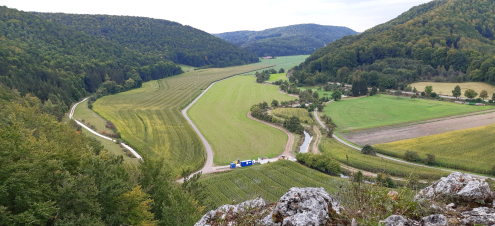 Tour 2: Bis zum Geißenklösterle wie Wanderung 1. Von dort auf ebenen Wegen nach Blaubeuren. Länge 6 km. Höhenmeter 300m.
